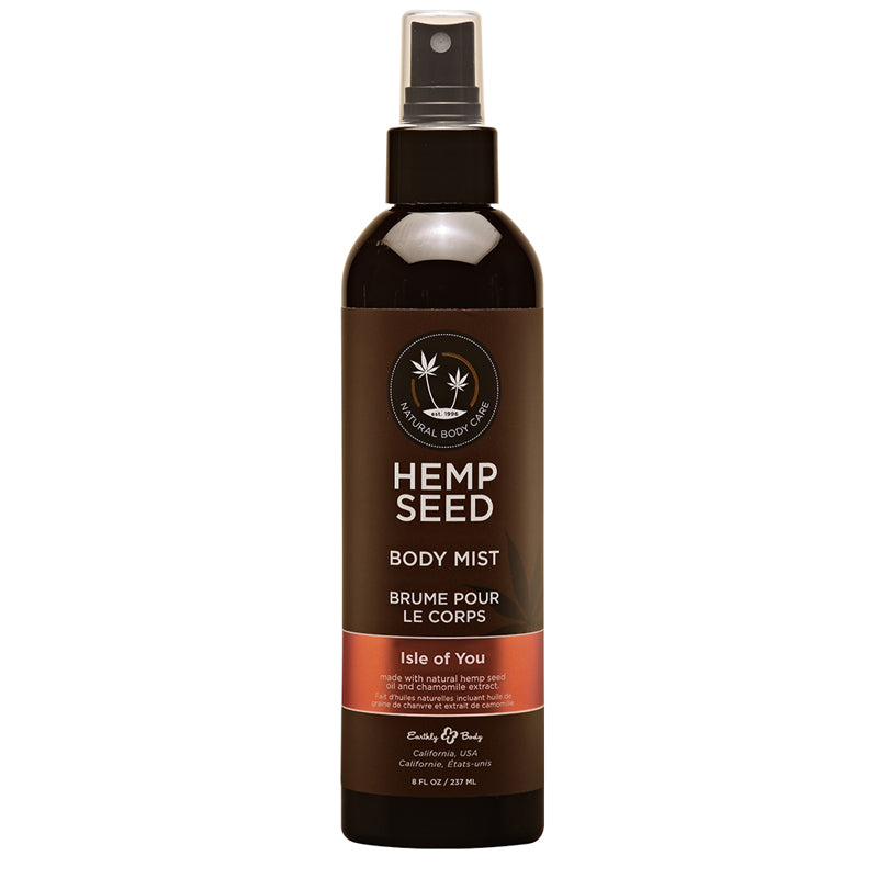 A fragrant, refreshing spray that moisturizes and invigorates your skin. This light, seductive spray nourishes your faces and body with hemp and pure botanicals. Use this alcohol-free mist to refresh linens and carpets, a lightweight perfume, or toss in the fridge for the cool blast of freshness on a hot day. Isle of You scent is a combination of coconut water, citrus and vanilla. 8 oz.