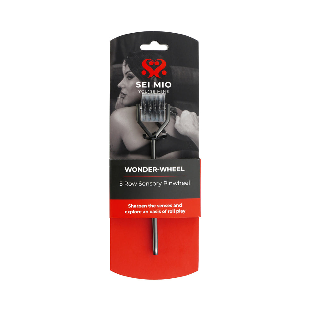 Unleash electrifying new sensations with the Sei Mio Wonder Wheel, a 5-row sensory pinwheel that brings a thrilling edge to every touch. Designed to heighten sensitivity, this elegant yet daring tool features five rows of precisely placed spikes that glide smoothly along the skin, awakening nerve endings and igniting tingling pleasure.Whether exploring light strokes or adventurous pressure, the Wonder Wheel intensifies every caress, nibble, and pinch, making each touch unforgettable. With its ergonomic handle, this seductive sensory toy is as easy to control as exciting to wield, letting you explore a full spectrum of sensation play with comfort and confidence. Textured handle for reliable grip and control Nickel free metal 5 wheels of pins for all over skin stimulation