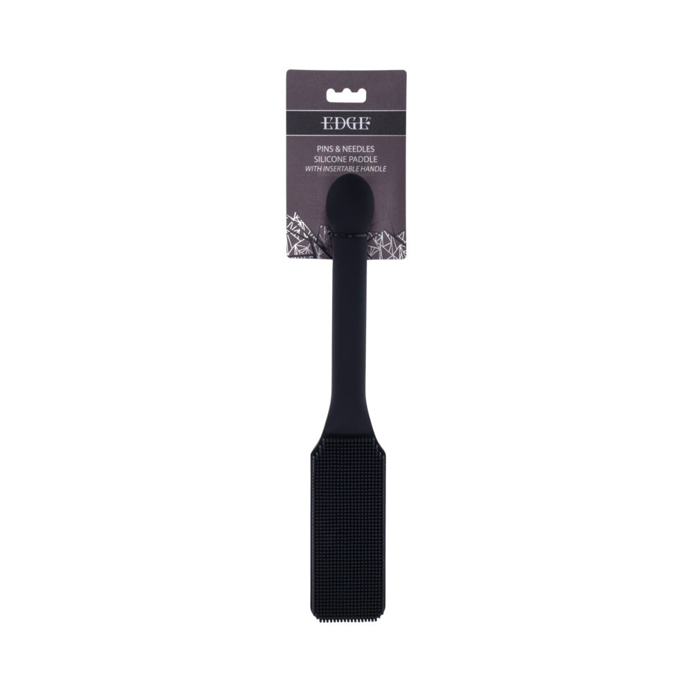 Heighten their anticipation with The Edge Pins & Needles Silicone Paddle and transform impact into art. Featuring a flexible silicone head lined with fine, needle-like silicone bristles, it delivers a concentrated, prickling sting that awakens the skin and heightens every nerve. Each swing balances control and cruelty, creating waves of sensation that linger long after the strike. The metal-reinforced, insertable handle delivers power, stability, and a satisfying versatility that transitions effortlessly from impact to indulgence. Crafted from 100% body-safe silicone, it”s built for players who crave texture, tension, and control that goes beyond the ordinary. 100% body-safe silicone exterior Metal reinforced, insertable handle for control and versatility Silicone ”pins & needles” head for a uniform, nerve-awakening intensity Materials: 51% Iron Alloy, 49% Silicone